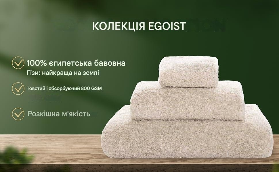 Відкрийте для себе рушники, які задають еталон комфорту й вишуканості в усьому світі. Колекція Egoist виготовлена з 100% єгипетської бавовни Giza ELS — найдовшого та найміцнішого волокна преміум-класу, що гарантує бездоганну м’якість, неймовірну густину та виняткову довговічність.
