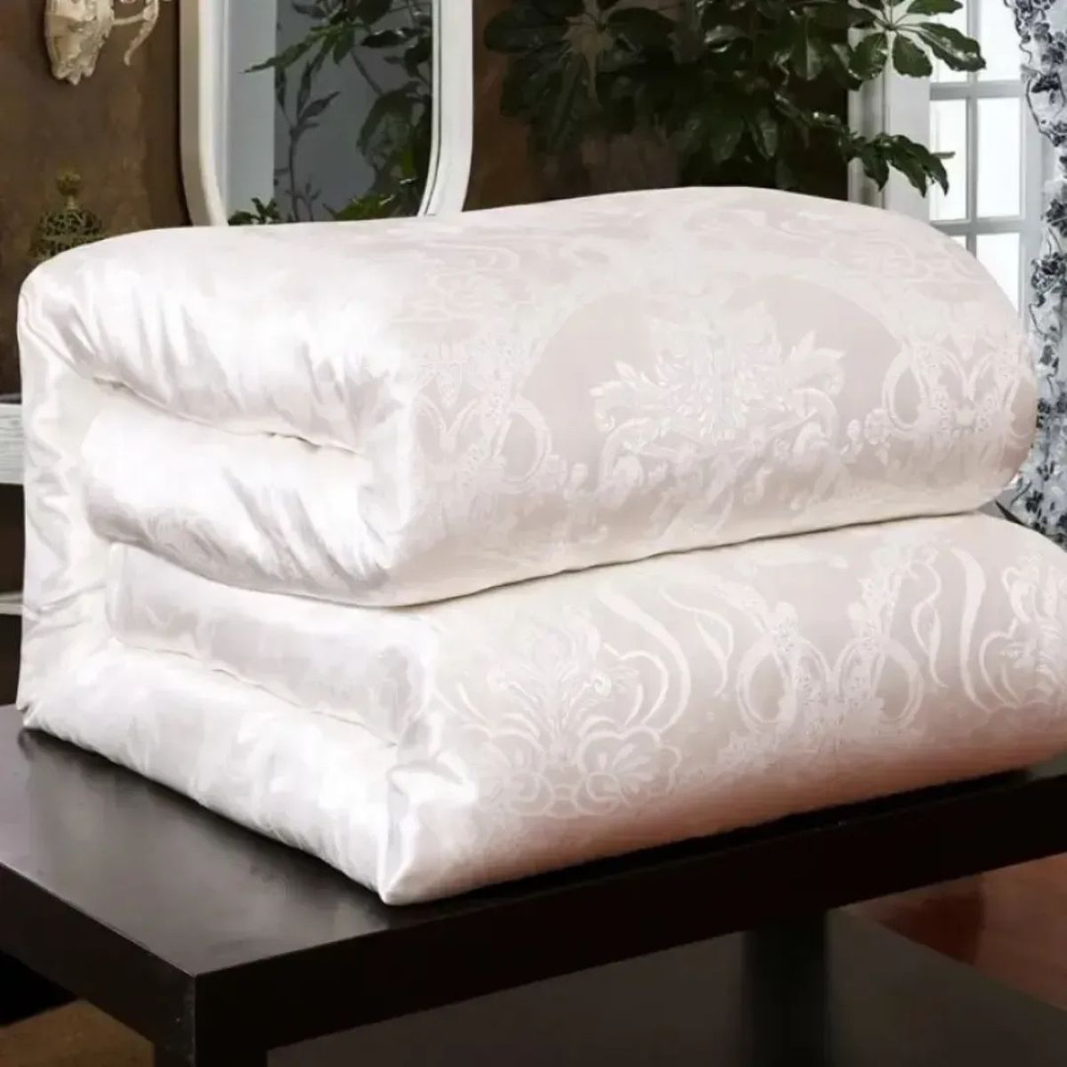 Шелковое одеяло Prestij Textile Okay создано для тех, кто хочет почувствовать настоящую элегантность и тепло. Наполнитель из натурального шелка прекрасно регулирует температуру, сохраняя тепло зимой и прохладу летом. Материалы гипоаллергенны и приятны к телу, что делает одеяло идеальным даже для людей с чувствительной кожей. Оно придает спальне роскошь и изысканность.
